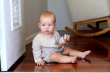 Keeping true to the natural beauty of premium raw materials our pacifier clips are made from unfinished vegetable tanned leather which is softer and warmer to touch. Once exposed to light, liquids, heat and handling it deepens to a richer colour.