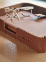 Atley.co leather desk tray organiser a functional and timeless piece crafted using Australian leather here in Melbourne to last by passionate artisans with over 50years working with leather.